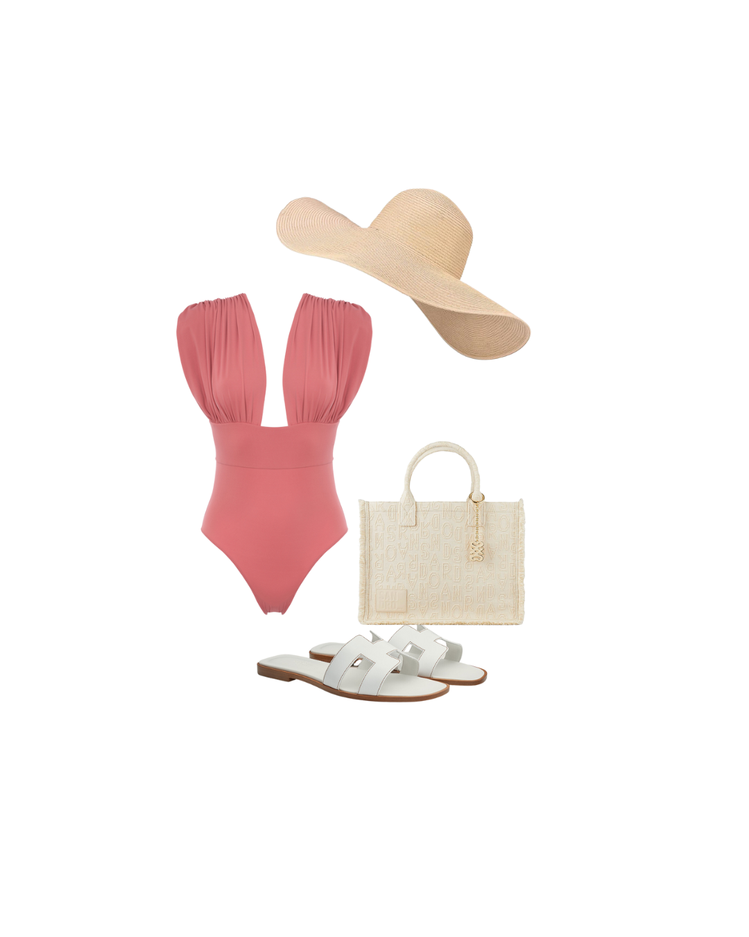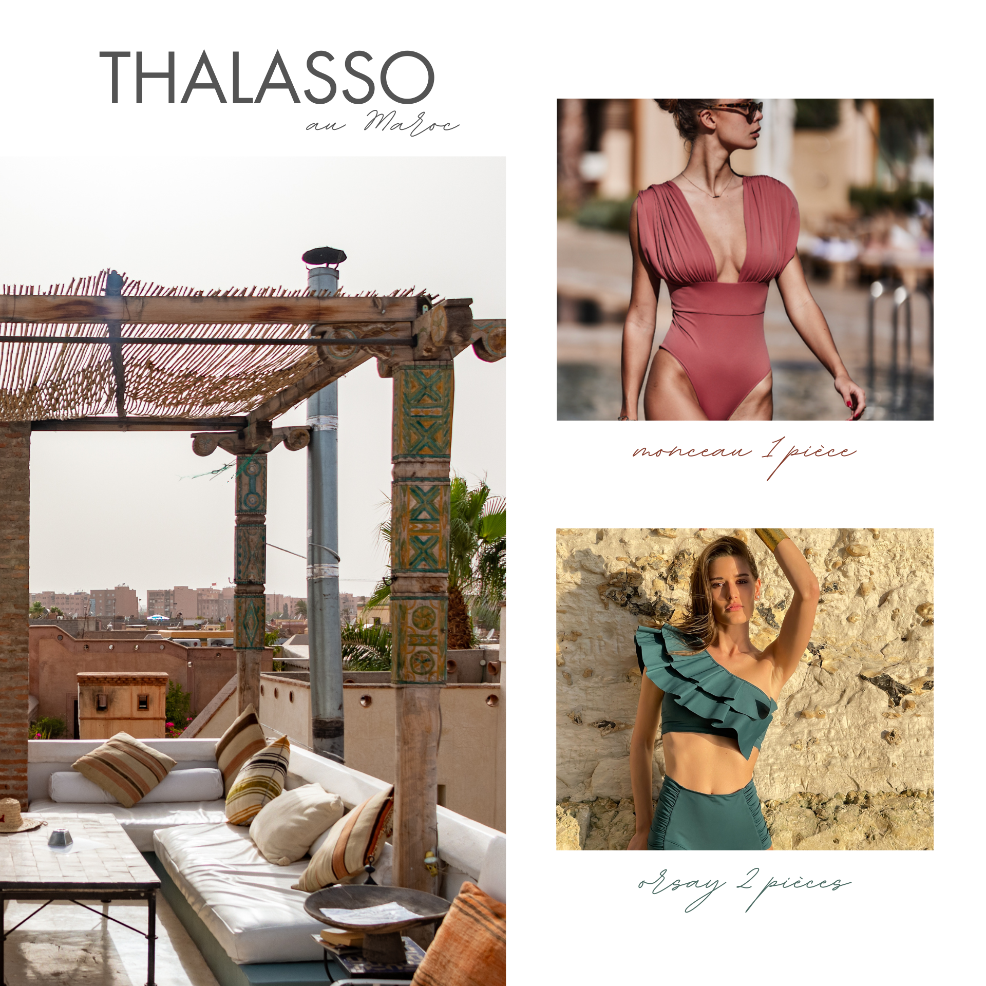 Après votre instant relaxant, profitez des eaux marocaines, vêtue de notre modèle Monceau une pièce. Sa couleur pêche et son décolleté lui confèrent une allure chic tout en étant très confortable. À l’approche du crépuscule, parez-vous de notre haut de maillot Orsay, accompagné d’une jupe longue en satin pour continuer de rayonner au sein des plus beaux restaurants de la ville rouge.