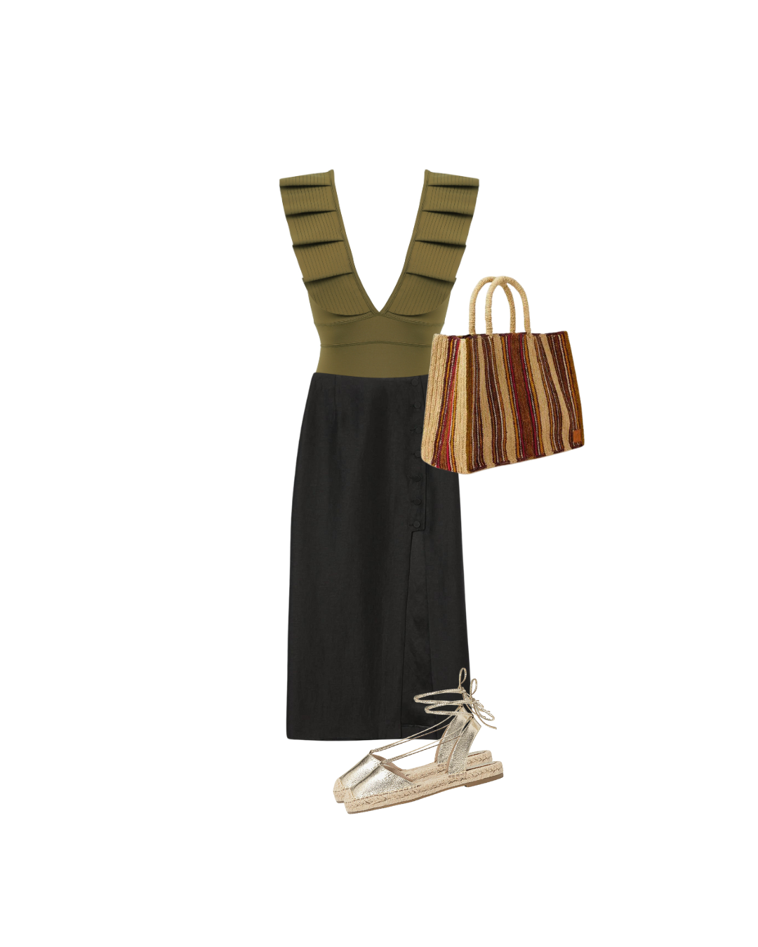 Pour vous accompagner lors de brunchs ensoleillés au Golf des Poètes, notre haut de maillot Palazzo accordé avec un long pantalon en lin vous donnera une allure élégante à l’italienne. Pour le reste de la journée, lors de vos balades dans les ruelles romantiques, parez vous de notre maillot de bain une pièce Isabela avec une jupe bohème. Ce look sublimera votre décolleté grâce à des volants travaillés, en mêlant subtilement élégance et sophistication.