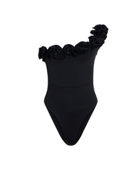 Le maillot de bain 1 pièce noir Cosmos de MAIÔ Paris célèbre une élégance couture minimaliste, sublimée par son asymétrie et son ornement floral signature. Sa bretelle unique, habillée de fleurs noires délicatement façonnées, apporte une dimension sculpturale qui distingue ce modèle comme une pièce d’exception.